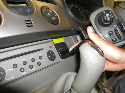 Flip the ProClip upward/forward so the angled lower edge hooks behind the lower part of the control panel.
