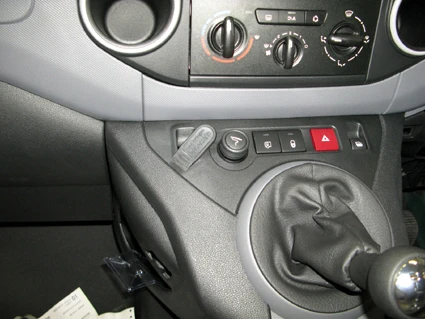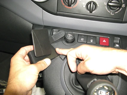 Press the thin end of the enclosed gap opener into the gap between the control panel and the center console, to widen the gap. Peel off the adhesive tape covers on the ProClip.