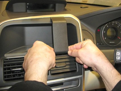 Pull the ProClip downward and then press it ward so the grooved edge hooks into the upper part of the air vent.