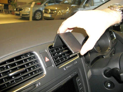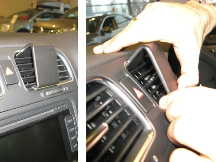 Press the lower part of the ProClip upward and forward. Hook the angled edge in the lower part over the lower edge of the air vent.