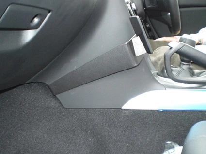 Use the enclosed alcohol pad to clean the area where the ProClip is to be installed. Peel off the cover of adhesive tape on the ProClip. Hook the angled edge on the right side of the ProClip over the console edge.
