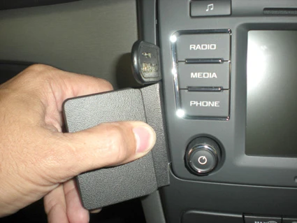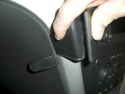 Use the enclosed alcohol pad to clean the area where the ProClip is to be installed. Press the thin end of the enclosed gap opener into the gap between the stereo and the surrounding frame, to widen the gap. Peel off the adhesive tape covers on the ProClip.