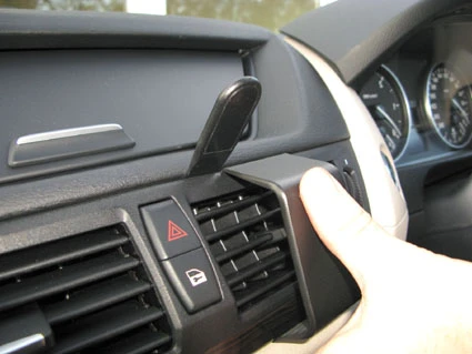 Press the gap opener into the gap between the frame surrounding the air vent and the dashboard. Press forward on the upper part of the ProClip so the angled edge hooks into the gap next to the gap opener.