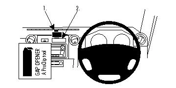 Use the enclosed alcohol pad to clean the area where the ProClip is to be installed. Press the thin angled edge on the enclosed gap opener into the gap between the air vent and the dashboard, to widen the gap Peel off the adhesive tape covers on the ProClip.