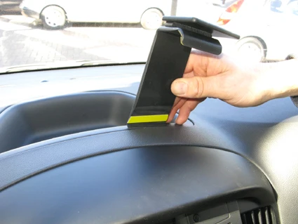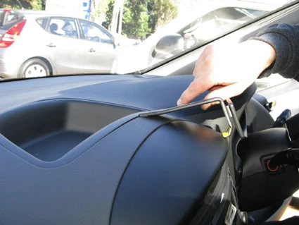 Press the ProClip downward so the angled lower edge hooks under the dashboard overhang.