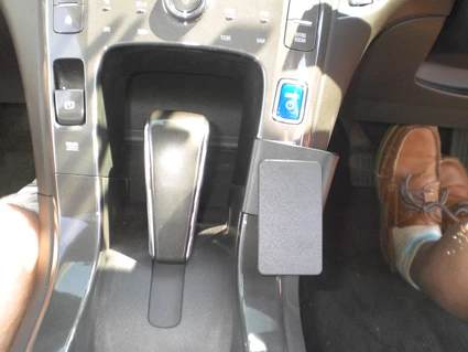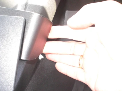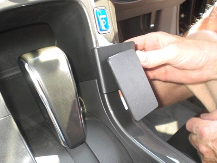 Hook the angled left edge of the ProClip around the console edge by the gear shift.