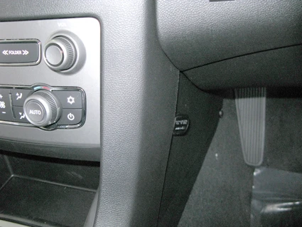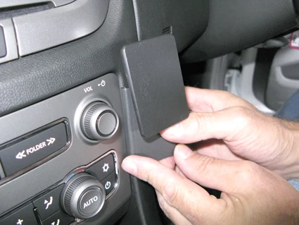 Press the angled edge on the ProClip into the gap between the climate control panel and the center console.