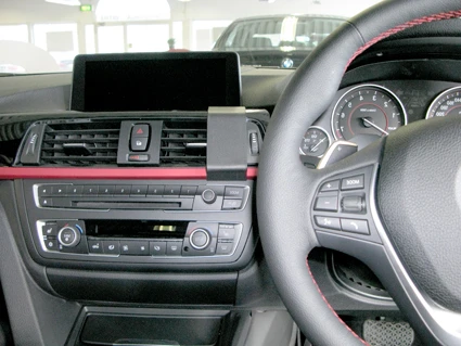 Press forward on the ProClip so the angled upper edge hooks into the gap between the frame surrounding the air vent and the dashboard.