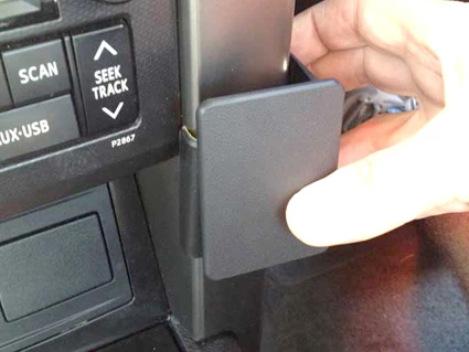 Press forward on the right side of the ProClip so the angled edge hooks around the center console sidewall.