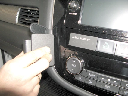 Press the gap opener into the gap between the dashboard sections. Press the left side of the ProClip foward so the grooved edge goes into the gap below the gap opener. Press until you hear/feel it snaps into place. Pull out the gap opener.