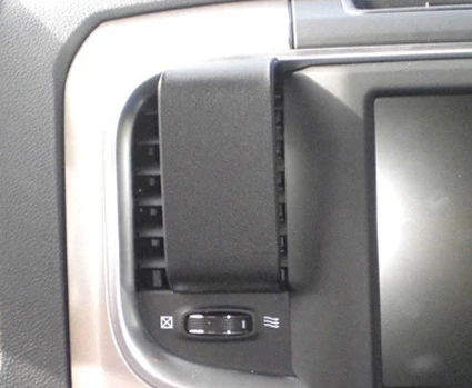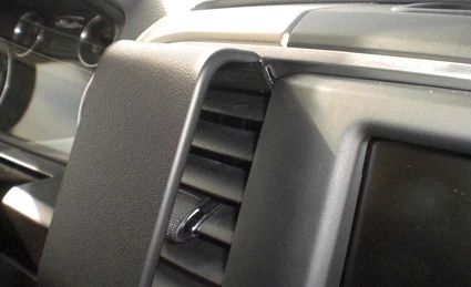 Use the enclosed alcohol pad to clean the area where the ProClip is to be installed. Peel off the cover of adhesive tape on the ProClip. Hook/press the angled edge on the upper part of the ProClip into the air vent behind the frame surrounding the air vent.
