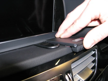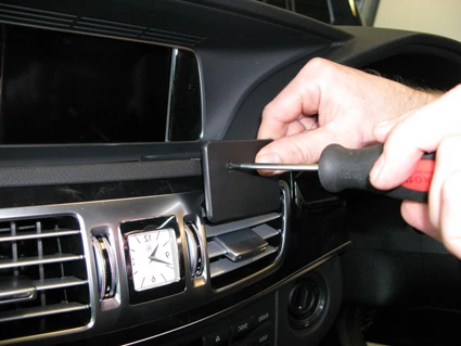 Use the enclosed alcohol pad to clean the area where the ProClip is to be installed. Press the enclosed gap opener into the gap between the frame surrounding the display and the dashboard, to widen the gap.