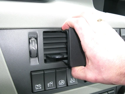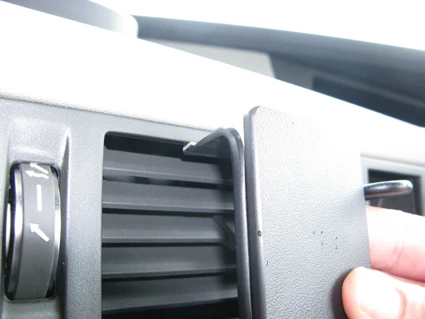 Press the gap opener into the gap in the lower inside of the air vent. Press the bottom part of the ProClip upward/forward so it flexes. At the same time insert the angled lower edge of the ProClip into the gap next to the gap opener.