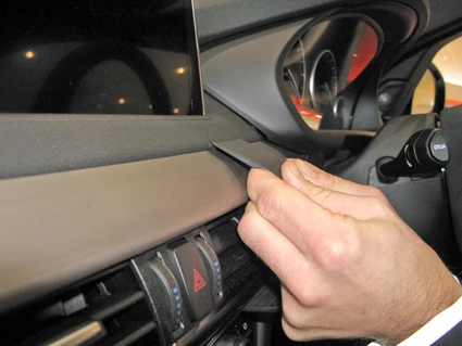 Push the top part of the ProClip upward/forward. Press the angled top part of the ProClip into the gap between the trim and the dashboard.