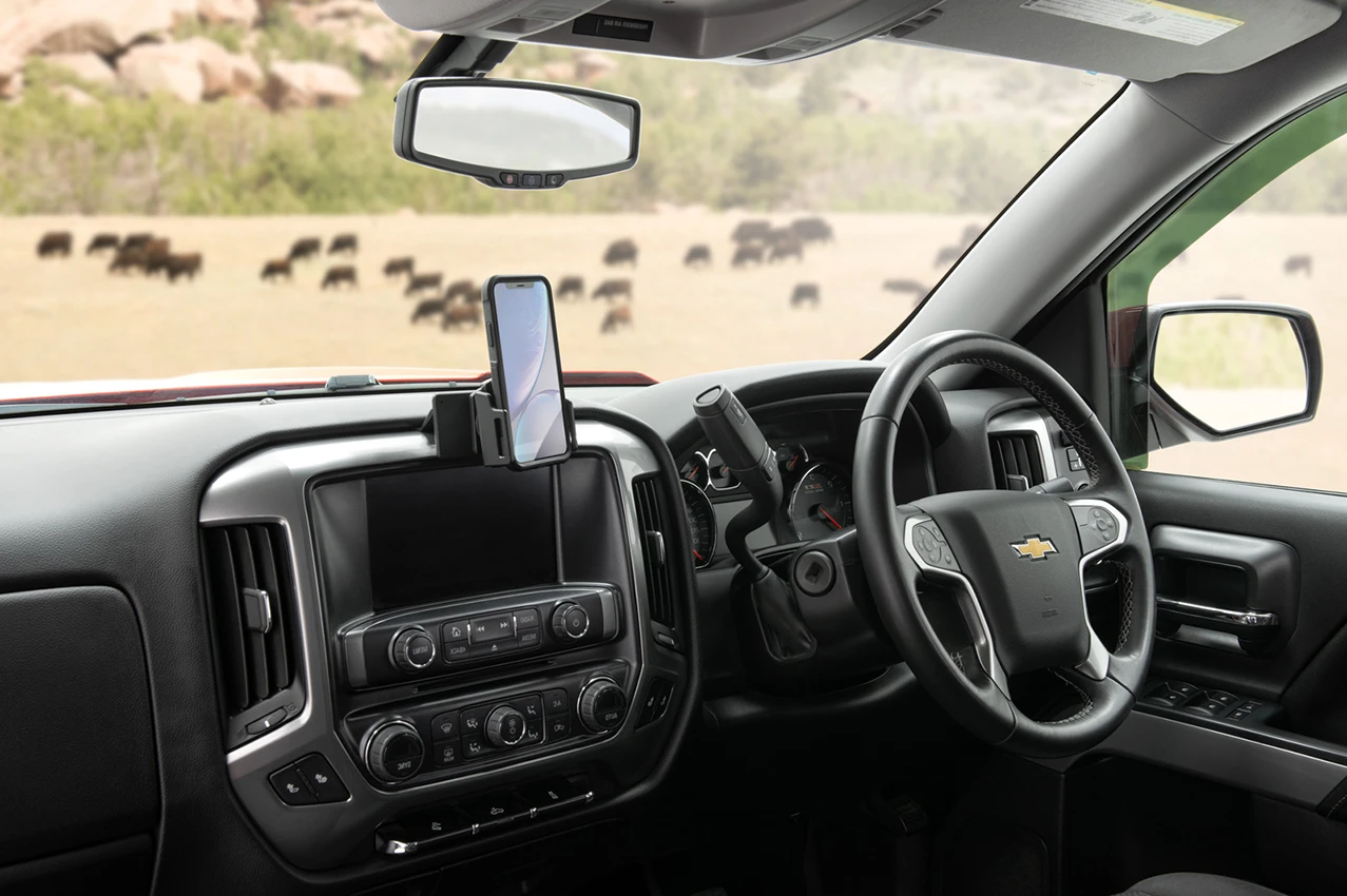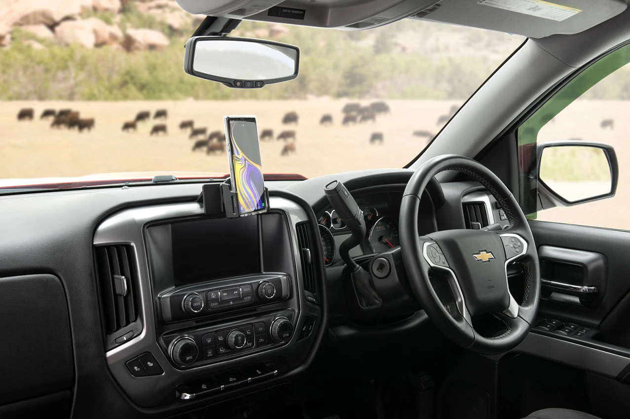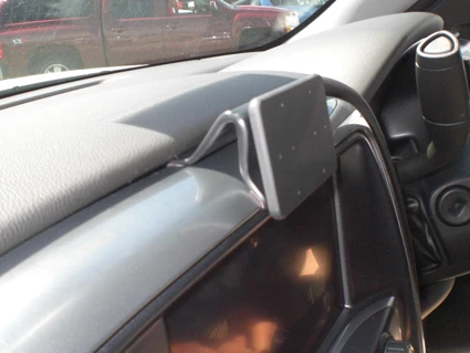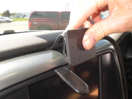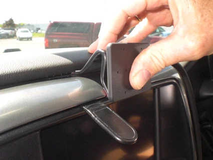 Press firmly forward on the ProClip so it flexes forward and the angled edge hooks around the panel frame edge by the padded part of the dashboard. Pull out the gap opener.
