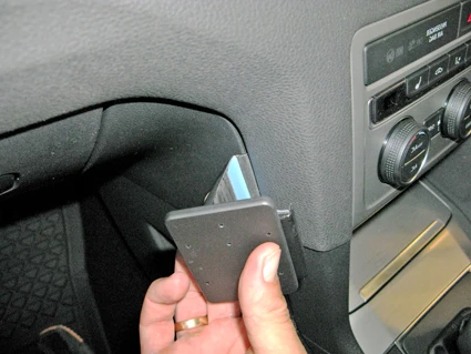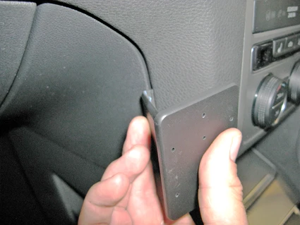 Hook the angled right part of the ProClip into the gap next to the center console control panel.