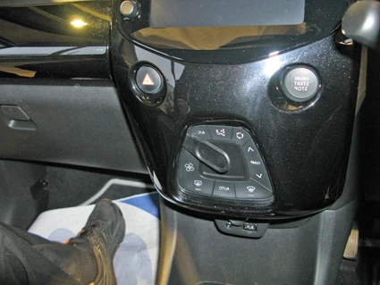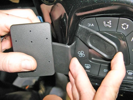 Press forward on the left part of the ProClip so the angled edge hooks into the gap on the side of the center console.