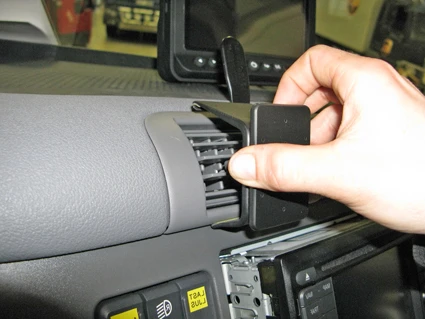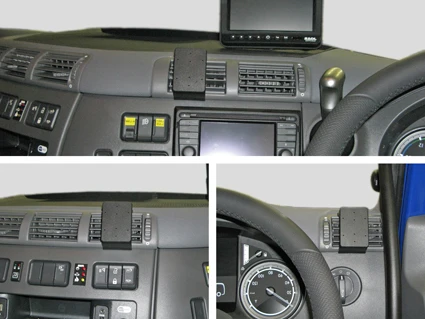 The ProClip is easy to install. The bracket simply snaps into place in gaps in the dashboard, you do not need to drill holes, not use special tools or not dismantle the dashboard. Made in black ABS plastic. Comes with detailed installation instructions. The mounting plate is equipped with predrilled holes which make the installation of equipment on the ProClip easier. The holes suit all Brodit holders and other products with standard holes, the hole pattern constists of one set of AMPS-holes as well as two sets of double-holes placed in different height.
