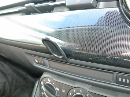 Insert the thin end of the gap opener into the gap by the upper edge of the trim, to widen the gap. Hook the angled top part of the ProClip into the gap next to the gap opener. Make sure the ProClip is placed next to the button for the hazard warning lights. Remove the gap opener.