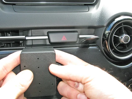The ProClip is easy to install. The bracket simply snaps into place in gaps in the dashboard, you do not need to drill holes, not use special tools or not dismantle the dashboard. Made in black ABS plastic. Comes with detailed installation instructions. The mounting plate is equipped with predrilled holes which make the installation of equipment on the ProClip easier. The holes suit all Brodit holders and other products with standard holes, the hole pattern constists of one set of AMPS-holes as well as two sets of double-holes placed in different height.