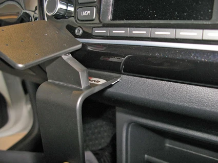 The ProClip is easy to install. The bracket simply snaps into place in gaps in the dashboard, you do not need to drill holes, not use special tools or not dismantle the dashboard. Made in black ABS plastic. Comes with detailed installation instructions. The mounting plate is equipped with predrilled holes which make the installation of equipment on the ProClip easier. The holes suit all Brodit holders and other products with standard holes, the hole pattern constists of one set of AMPS-holes as well as two sets of double-holes placed in different height.