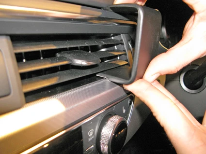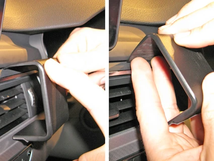 Press the lower part of the ProClip upward so the milled lower edge goes into the lower part of the air vent and the adhesive tape fastens.