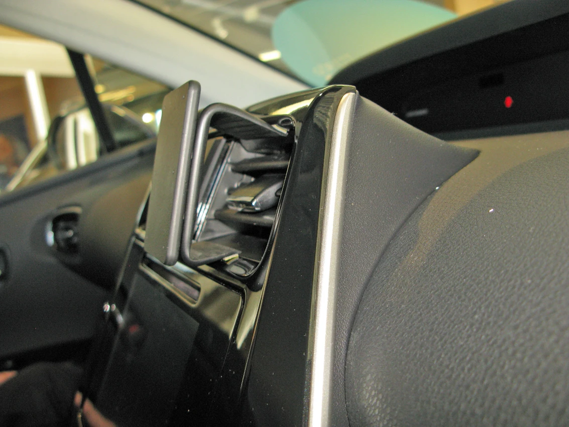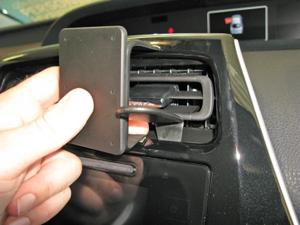 Flex the upper edge of the ProClip downward so the upper edge can attach to the upper inside of the air vent. Press the upper edge upward so the adhesive tape fastens properly.