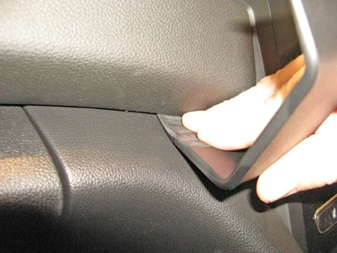 Insert the angled lower edge of the ProClip into the gap dividing the dashboard paneling.