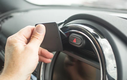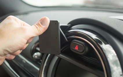 Press the ProClip forward until the angled upper edge hooks under the padded part of the dash top.