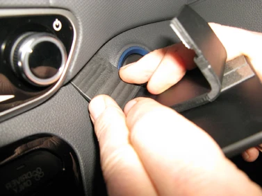 Press the upper part of the ProClip upward/forward so the lower angled edge hooks behind the lower section of the dashboard.