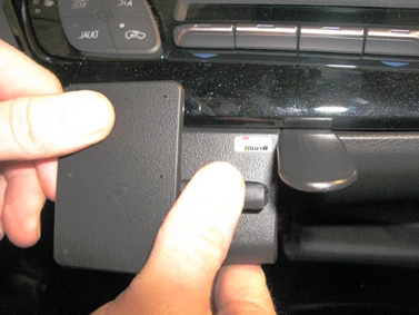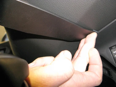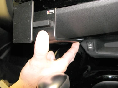 Press forward on the lower part of the ProClip so the angled edge hooks into the gap between the dashboard and the center console.