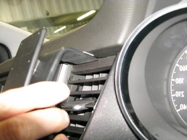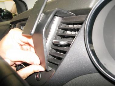 Press the lower part of the ProClip upward and forward. Hook the angled edge on the lower part of the ProClip into the gap between the air vent and the center console.