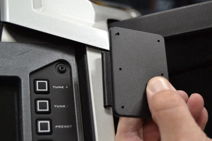 Pull the left side of the ProClip towards you and hook the left "J" shaped edge over the center console frame.