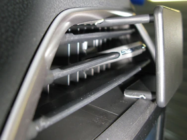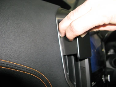 Press the ProClip rightward and press the left edge into the air vent. Press on the left side of the ProClip so the grooved edge snaps onto the frame surrounding the air vent.
