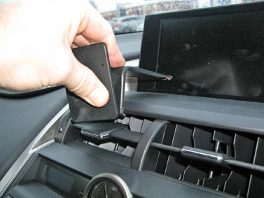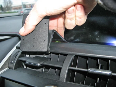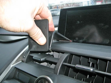 Press the angled upper edge of the ProClip into the gap between the information screen and dash board.