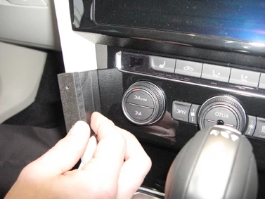 Use the enclosed alcohol pad to clean the area where the ProClip is to be installed. Press the angled edge on Part 1 into the gap between the control panel and the surrounding frame.