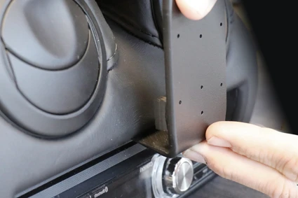 Press the thin lower edge on the ProClip into the gap between the dashboard and the frame surrounding the stereo.
