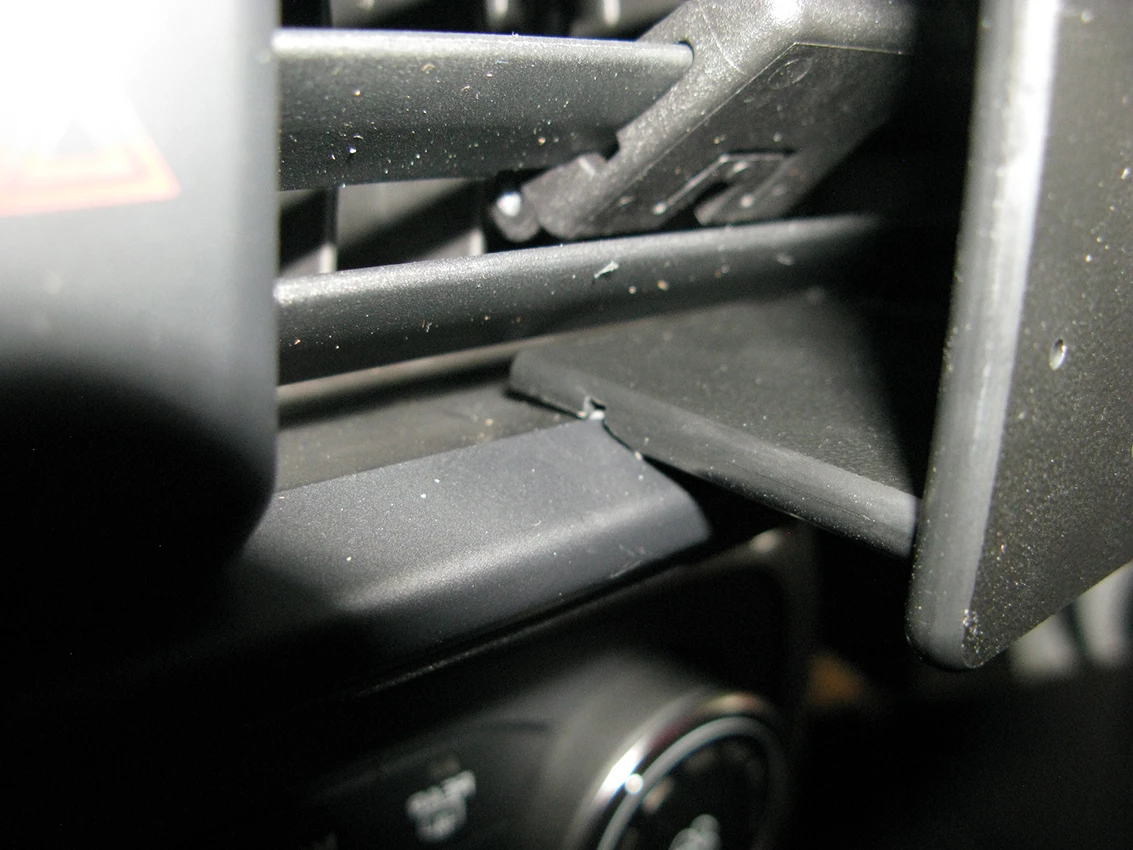 Press forward on the upper part of the ProClip so the grooved upper edge hooks under the frame surrounding the air vent.