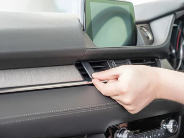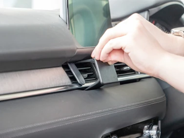 Use the enlcosed alcohol pad to clean the area where the ProClip is to be installed. Press the thin end of the enclosed gap opener into the gap between the frame surrounding the air vent and the dashboard, to widen the gap. Peel off the adhesive tape cover on the ProClip.