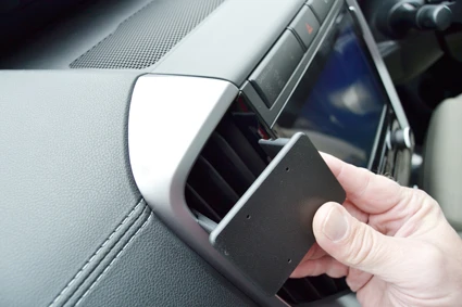 Press the ProClip leftwards, then forward so the right edge hooks onto the frame surrounding the air vent.