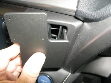 Press forward on the left side of the ProClip so the grooved left edge snaps behind the inside edge of the frame surrounding the air vent.