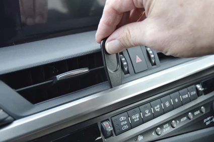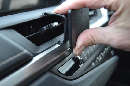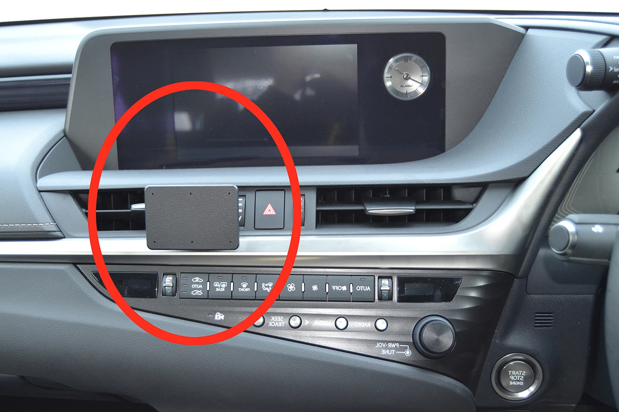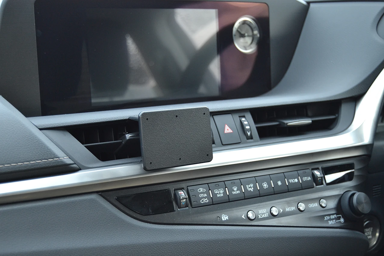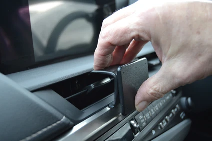 The ProClip is in place. This ProClip can be placed anywhere within the width of the air vents. If placed onto the right air vent, a device installed in this position may block the display.