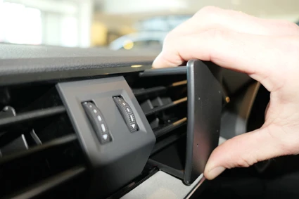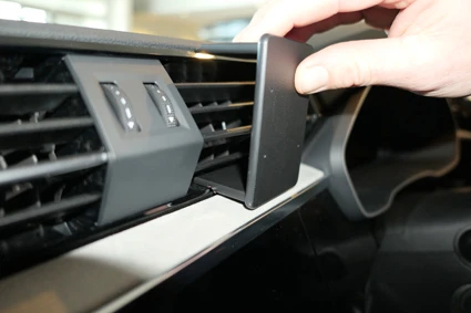 Hook the angled edge on the upper part of the ProClip under the frame surrounding the air vent.