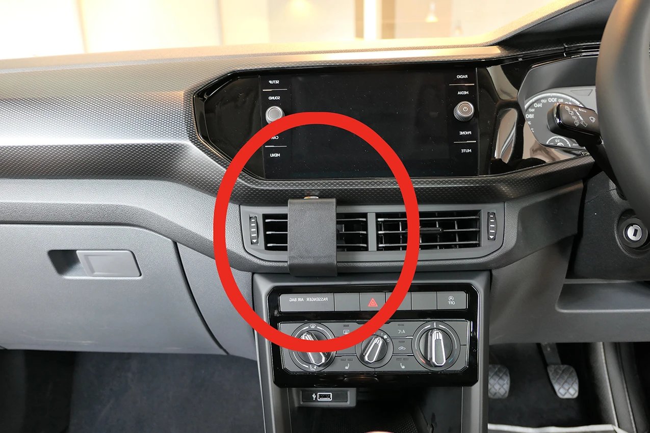 This ProClip can also be placed onto the right air vent. A device installed in this position may block the display.