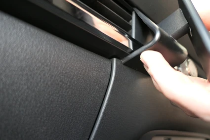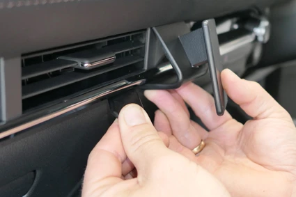 Press the gap into the gap between the frame surrounding the air vent and the dashboard. Press the angled edge on the lower part of the ProClip into the gap next to the gap opener.