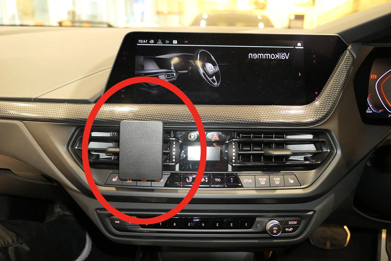 This ProClip can also be placed onto the right air vent. A device in this position may block the display.