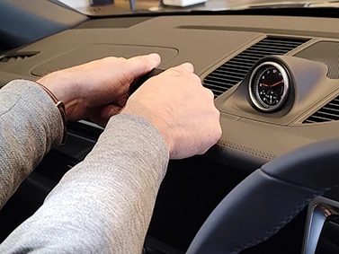 Pull the lower edge of the ProClip toward you and down. Hook the lower edge under the dashboard ledge.
