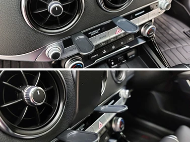 Press the thin end of the enclosed gap openers into the gap between the soft dashboard surrounding the air vents and the control panel, to widen the gap. Press the lower edge of the ProClip into the gap between the gap openers. Pull out the gap openers.