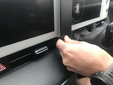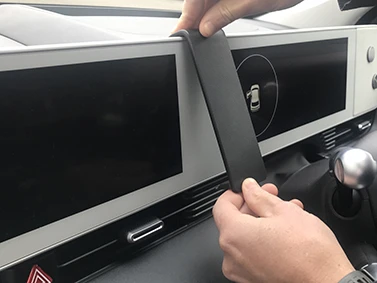 Press the lower edge of the ProClip forward into the gap between the frame surrounding the display and the frame surrounding the air vent.