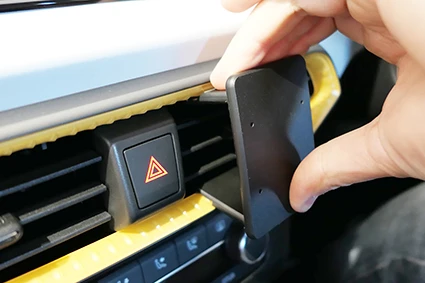 Press the lower part of the ProClip upward and forward. Hook the grooved edge on the lower part of the ProClip over the frame surrounding the air vent.
